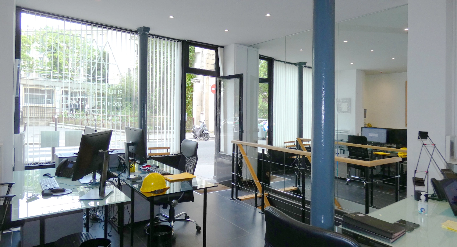Les locaux de l’agence ont pignon sur rue au 95 rue de Meaux, dans le 19e arrondissement de Paris et sont aménagés pour un exercice efficace de la profession d’architecte de copropriété.